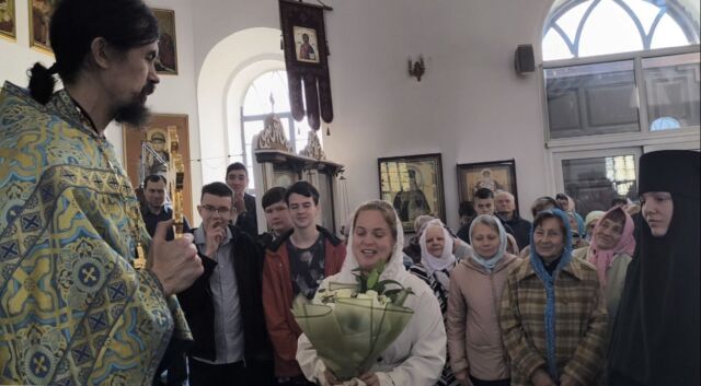 По окончании Литургии, прихожане поздравили с днем рождения и.о. игумена монастыря отца Феодосия.
