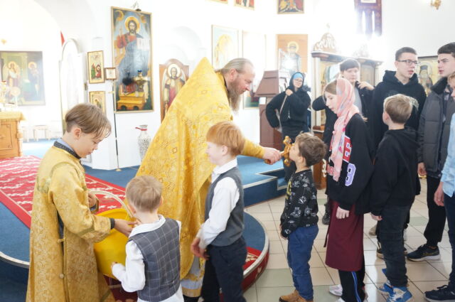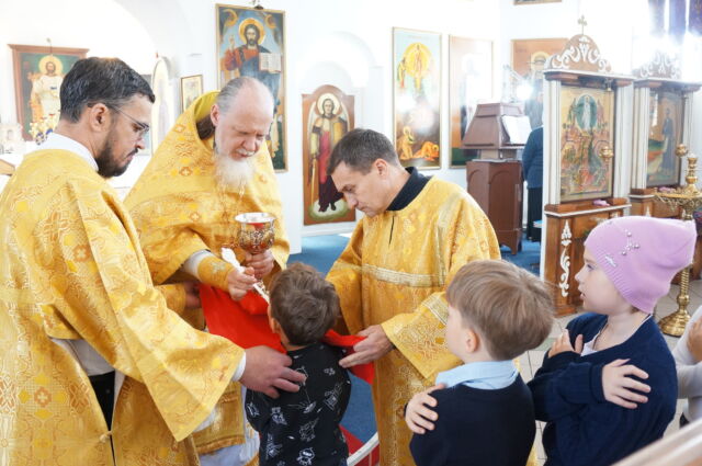 В воскресение, 5 октября, в семнадцатую неделю по Пятидесятнице, на Божественной Литургии читался отрывок из Евангелия от Луки(5:1-11). С проповедью к прихожанам обратился священноинок Антоний. Батюшка поздравил прихожан с воскресным днем и рассказал о том, как необходимо идти к Богу, что только ощущая свое не достоинство и уповая на милость Господа нашего Иисуса Христа, для нас становится возможным стать причастным к Царствию Небесному. Подобное смирение и сокрушение было явлено в сегодняшнем Евангельском чтении Апостолом Петром, который припал к ногам Иисуса, говоря, что не достоин находиться рядом с Ним, после чуда с уловом рыбы.