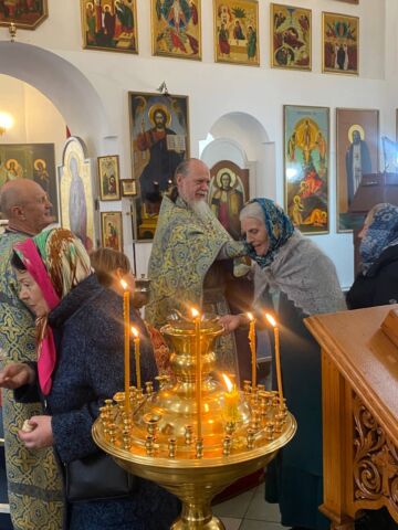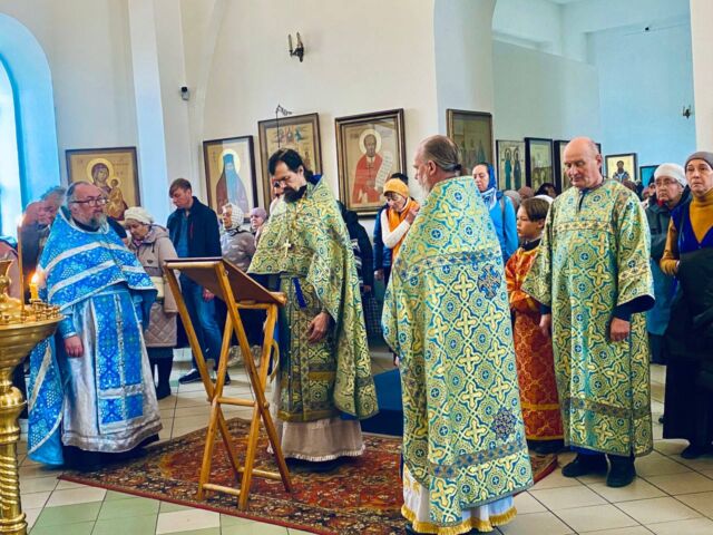 Во вторник, 14 октября, в девятнадцатую неделю по Пятидесятнице, в праздник Покрова Пресвятой Владычицы нашей Богородицы и Приснодевы Марии, на Божественной Литургии читалось 2 отрывка из Евангелия: Лк(10:38-42; 11:27-28) и Лк(10,16-22).С проповедью к прихожанам обратился иеромонах Феодосий. Батюшка поздравил прихожан с праздником и рассказал историю происхождения этого праздника. А также заметил, что эта история учит нас тому, что Матерь Божия и все остальные святые несмотря на то, что пребывают в величайшей радости и блаженстве, молятся за нас. Батюшка призвал возлюбить молитву и совершенствоваться в ней, потому как, молитва это есть общение с Богом, а общение с Богом есть главная радость людей, пребывающих в Царстве Небесном.