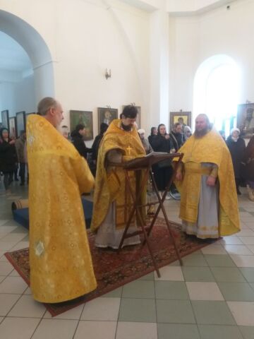 В воскресенье, 9 ноября, в двадцать вторую неделю по Пятидесятнице, на Божественной Литургии читался отрывок из Евангелия от Луки(8:26-39). С проповедью к прихожанам обратился иеромонах Феодосий. Батюшка поздравил прихожан с воскресным днем, а также, разбирая сегоднешнее Евангельское повествование, в котором рассказывалось о Гадаринском бесноватом, отметил, что этот отрывок ясно говорит о наличии темных бесовских сил, с которыми мы должны бороться, и лучшее средство в этой борьбе — пост и молитва. Отец Феодосий призвал прихожан быть усердным к молитве и посту, уповая на Господа нашего Иисуса Христа, и принимать Его Волю, даже, если она не совпадает с нашими прошениями и желаниями.