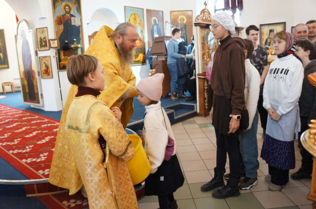 В воскресенье, 16 ноября, в двадцать третью неделю по Пятидесятнице, на Божественной Литургии читался отрывок из Евангелия от Луки(8:41-56). С проповедью к прихожанам обратился священноинок Антоний. Батюшка поздравил прихожан с воскресным днем, а также, разбирая сегоднzшнее Евангельское чтение, обратил внимание на такое понятие, как духовная мудрость. Эта мудрость, которая нам дает некоторое понимание замыслов Божиих. Поэтому, когда случается с нами неприятные испытания, даже смерть близкого человека, мы не ропщем на Бога, а принимаем Его волю с благодарностью и испытываем утешение. Батюшка призвал также при молитвенных прошениях чего либо у Господа просить прежде всего духовной мудрости, как попросил её у Бога некогда царь Соломон, а Господь вместе с мудростью послал ему и мирские блага.