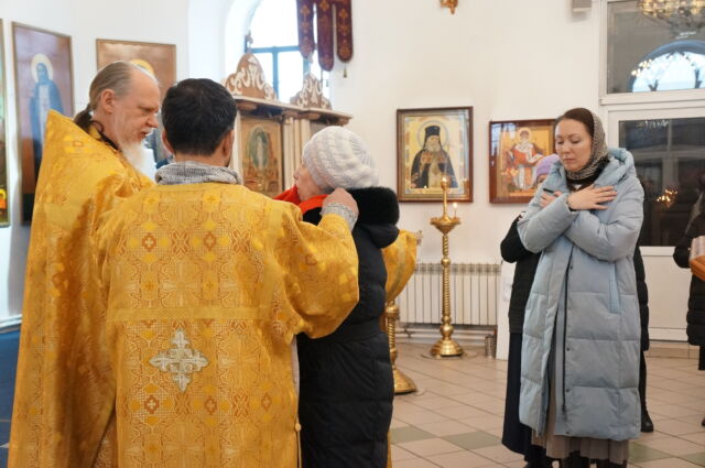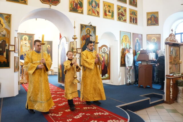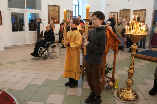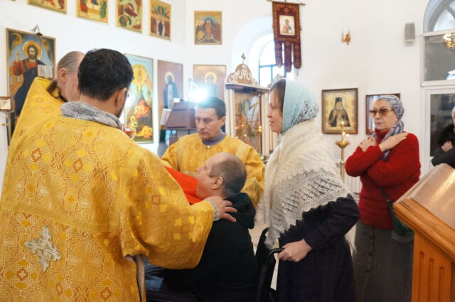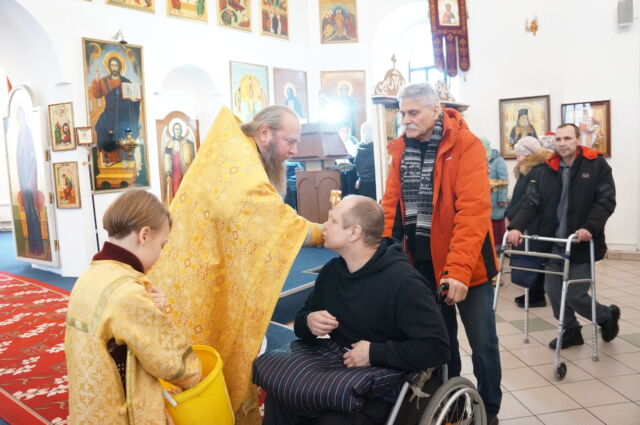 В воскресенье, 21 декабря, в двадцать восьмую неделю по Пятидесятнице на Божественной Литургии читался отрывок из Евангелия от Луки(17:12-19). С проповедью к прихожанам обратился иеромонах Феодосий. Разбирая сегодняшнее Евангельское чтение об исцелении Господом десяти прокаженных, батюшка обратил внимание на то, что благодарить Господа Иисуса Христа вернулся лишь один самаритянин, а девять остальных исцеленных не пришли. О. Феодосий также сказал, что необходимо благодарить Господа не только за благости, но и за скорби, как с благодарностью их принимали мученики и праведники Ветхого и Нового Заветов, т.к. все эти тяготы очищают наши духовные болячки и подготавливают души к вхождению в Царствие Небесное.