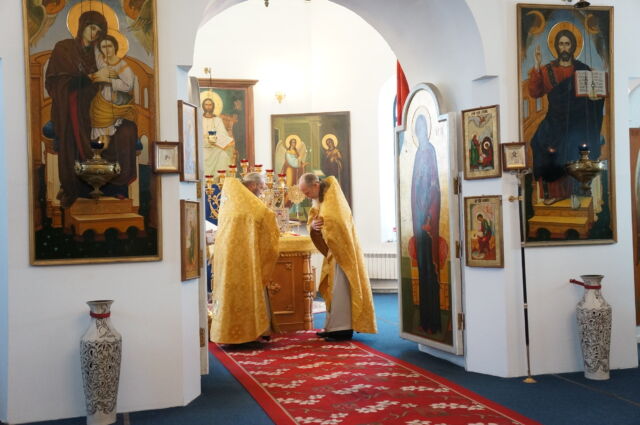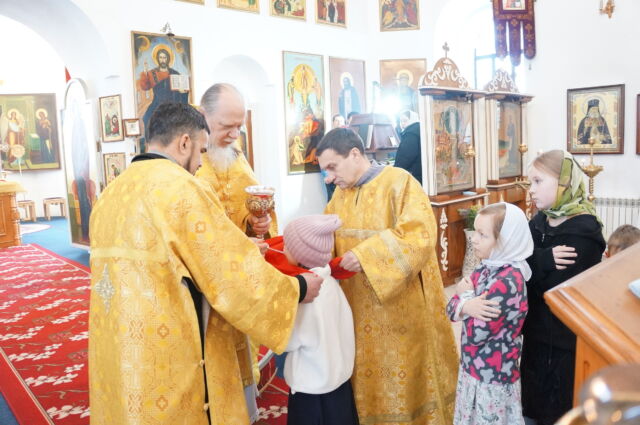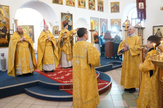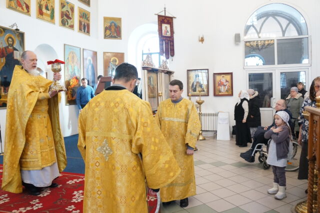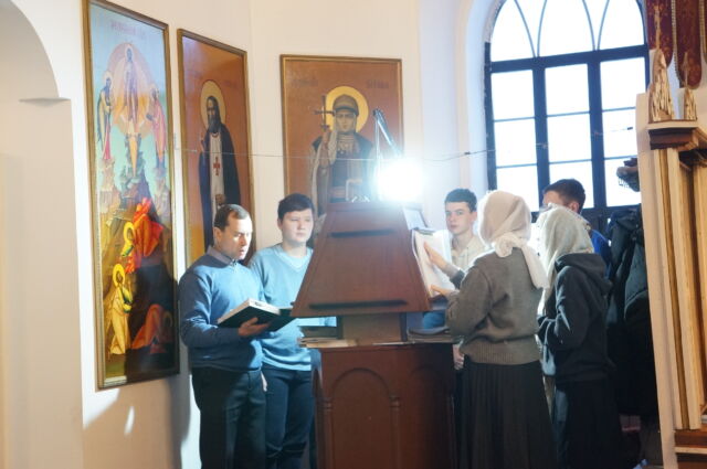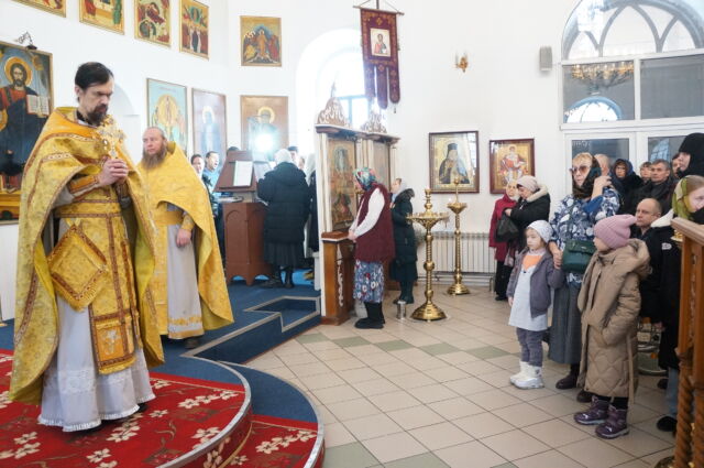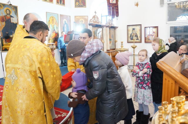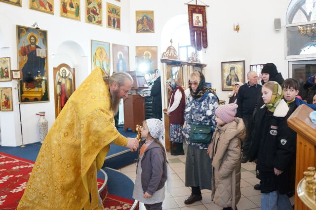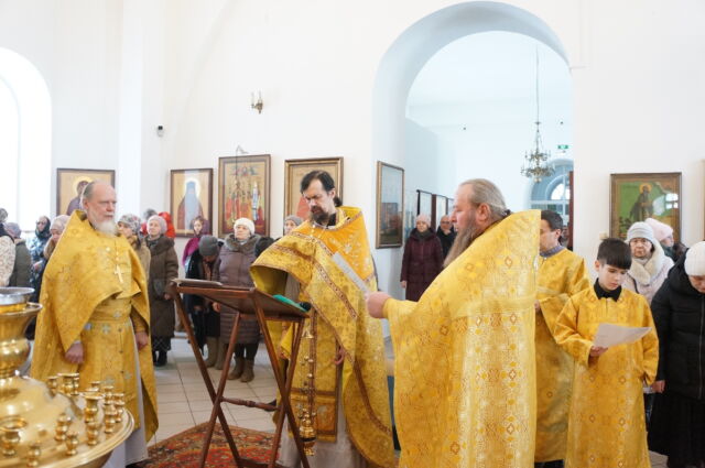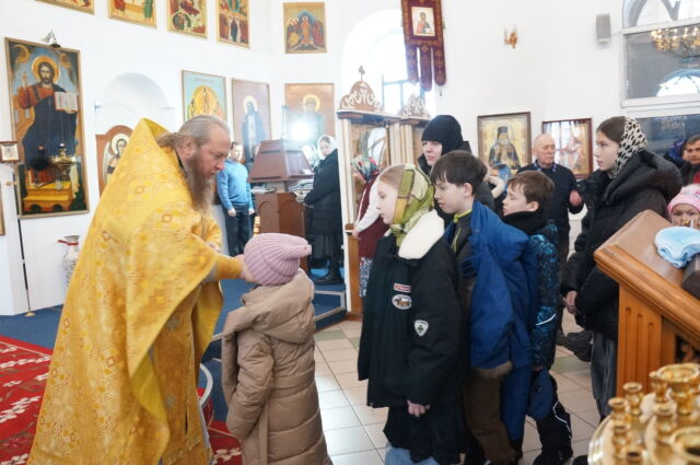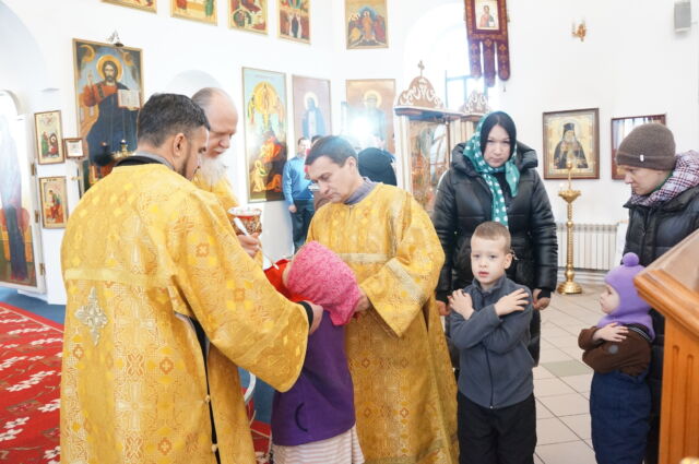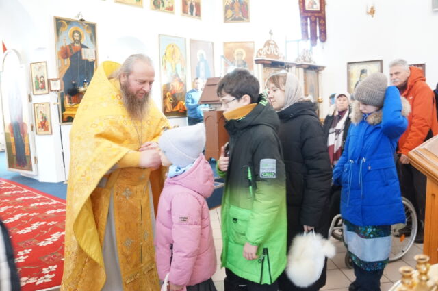 В воскресенье, 4 января, в тридцатую неделю по Пятидесятнице перед Рождеством Христовым, на Божественной Литургии читался отрывок из Евангелия от Матфея(1:1-25). С проповедью к прихожанам обратился священноинок Антоний. Батюшка поздравил прихожан с воскресным днем, напомнил, что началась неделя святых отец, и сказал, что святость приобретается нераздельным желанием и стремлением всей душой и сердцем к Богу, ко Христу, а все остальные стремления приобрести святость непременно приведут к гибели души, так как исходят от человеческих страстей(гордости например). Батюшка призвал также молиться святым и просить о помощи на пути к Богу.