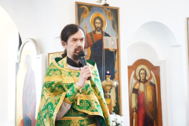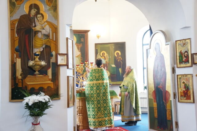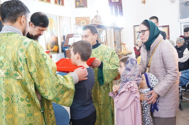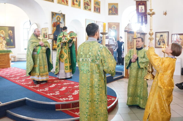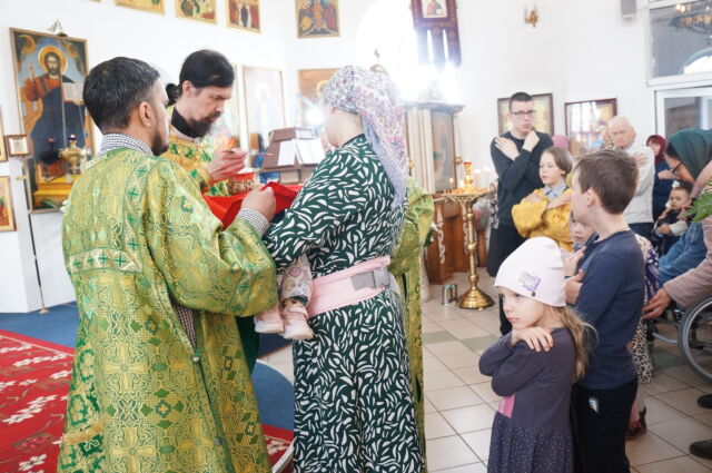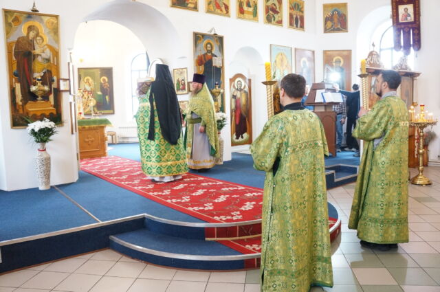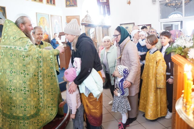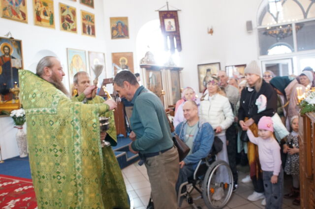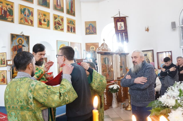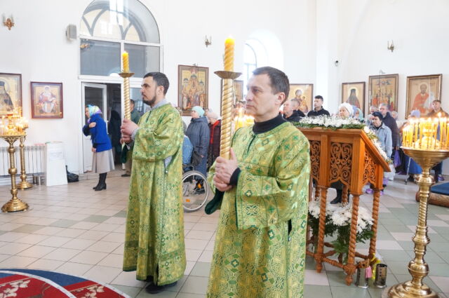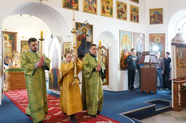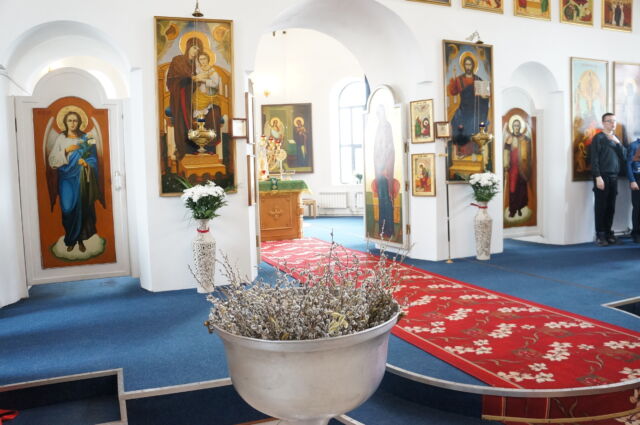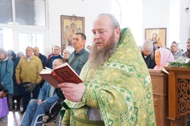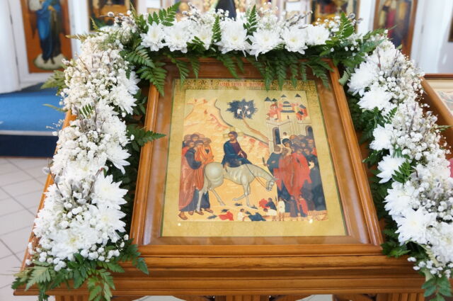 В воскресенье, 5 апреля, в неделю Ваий(В Вербное воскресенье), в праздник Входа Господня в Иерусалим, на Божественной Литургии читался отрывок из Евангелия от Иоанна(12:1-18). С проповедью к прихожанам обратился иеромонах Феодосий. Батюшка поздравил прихожан с праздником , а также призвал прихожан к празднованию праздника не только внешним образом, но и внутренне, духовно, сопереживая Господу, идущему на страдания. Он также призвал прихожан к исполнению слов Господа: » если кто хочет идти за Мною, отвергнись себя, и возьми крест свой, и следуй за Мною»(Мф.16, 24).