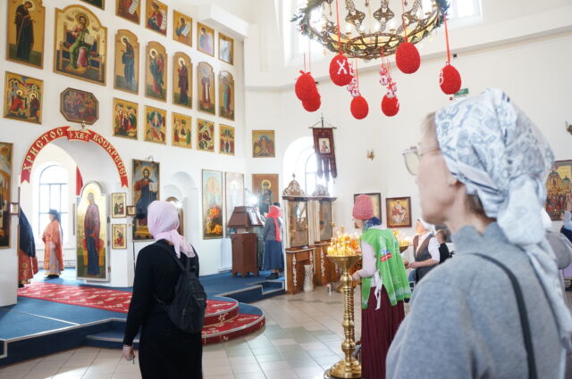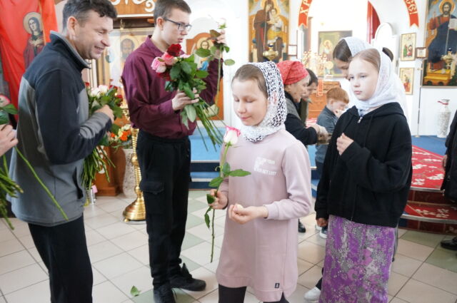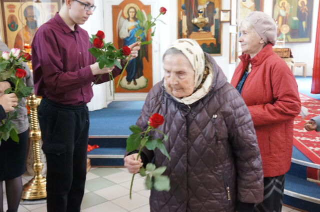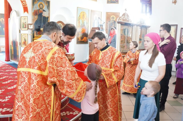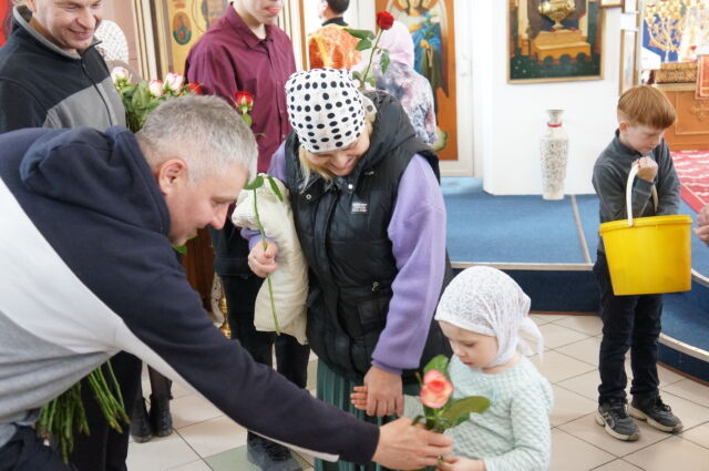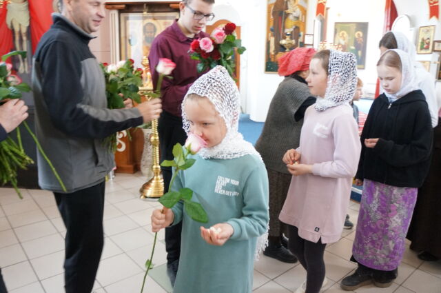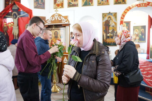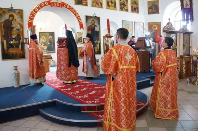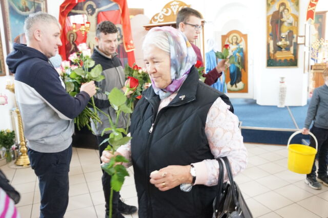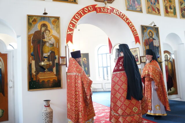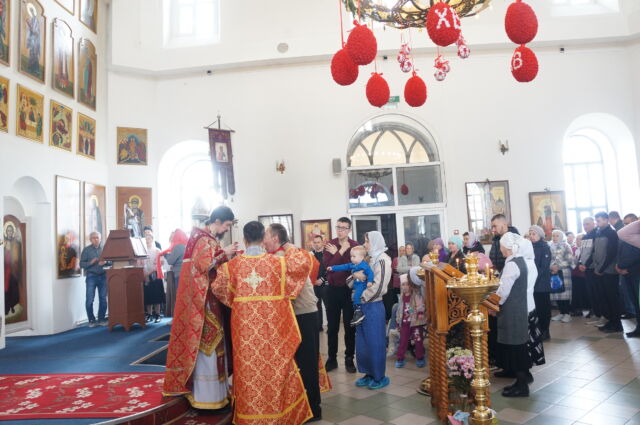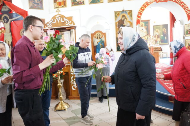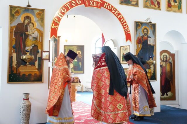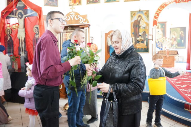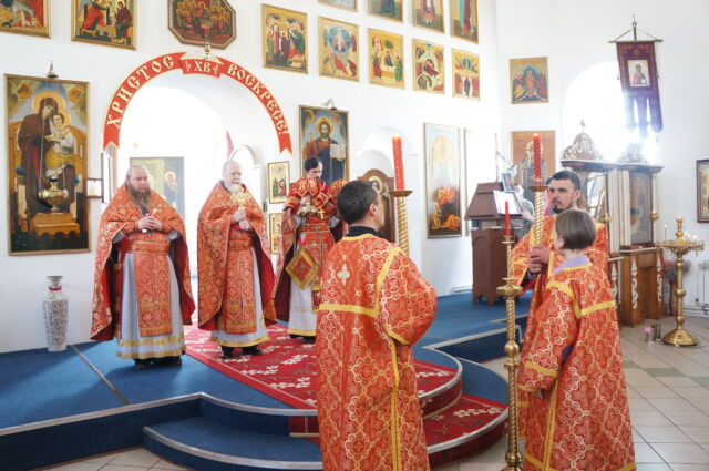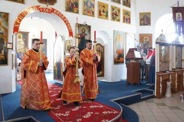В воскресенье, 26 апреля, в 3-ю неделю по Пасхе, свв. жен-мироносиц, на Божественной Литургии читался отрывок из Евангелия от Марка(15:43-16:8). С проповедью к прихожанам обратился иеромонах Савва. Батюшка поздравил прихожан с праздником и воскресным днём, а также рассказал о подвиге жен-мироносиц, сравнил холодную веру мужчин и сердечную женщин. Отметил то, что насколько сильнее и проникновеннее женщины в делах милосердия и сострадания, настолько же могут быть сильнее и изощрённее в зле и коварстве. Поэтому батюшка призвал всех возрастать в добром делании.